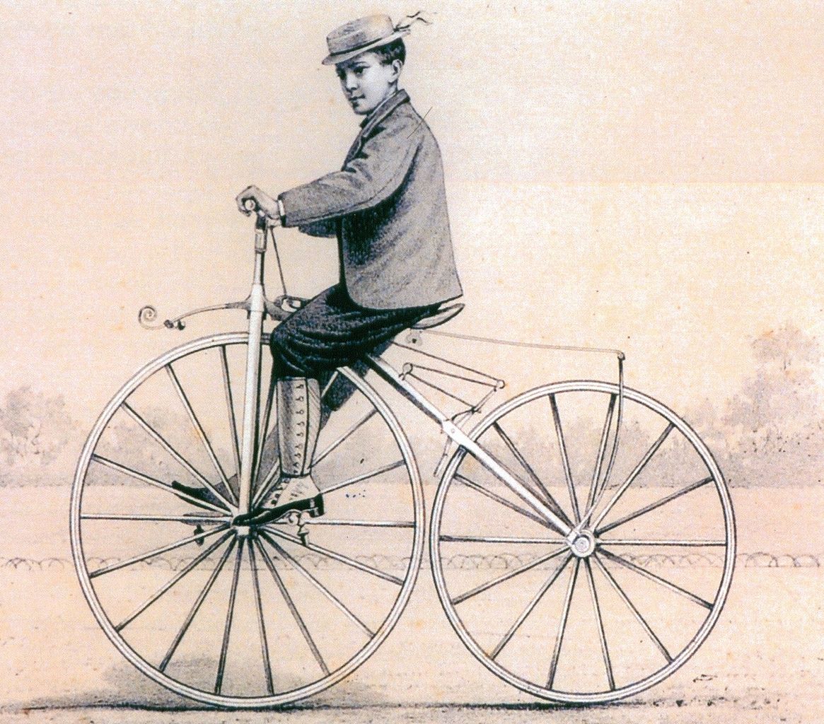 - Die Dame auf dem Hochraddingens: „Michauxjun“ by Unknown – Le Centaure magazine (Paris), Sept. 186 8. Licensed under Public Domain via Commons – https://commons.wikimedia.org/wiki/File:Michauxjun.jpg#/media/File:Michauxjun.jpg