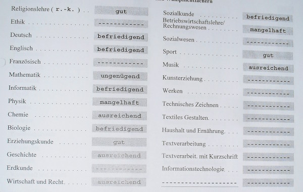 Ich: „Wie ich sagte. Das Zeugnis ist nicht gut.“