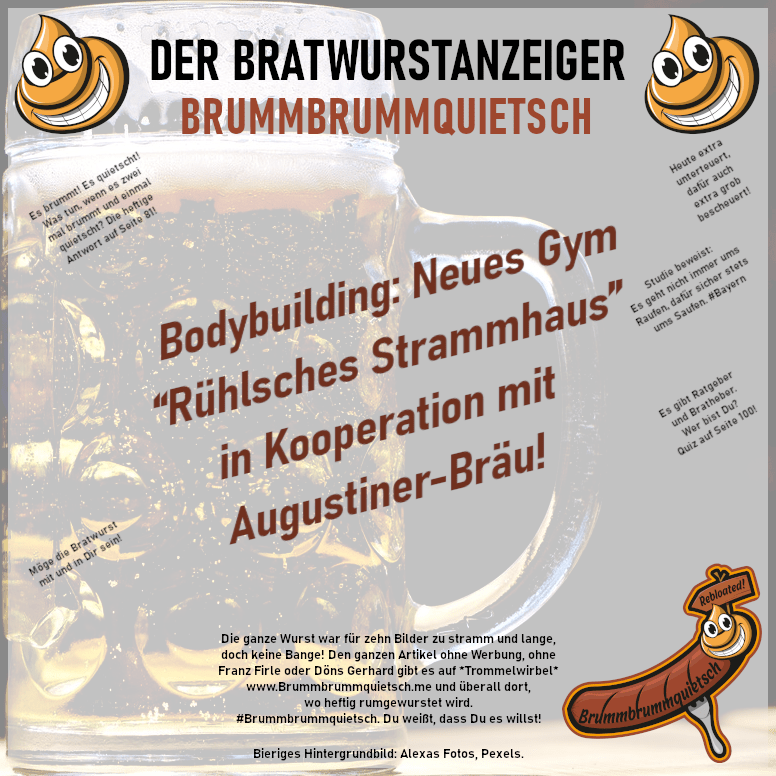 „Der Wille muss da sein“, weiß Rühl. „Scheiß auf den ganzen Rotz dieser ganzen scheiß Influencerpussies. Nur viel hilft viel. Und das hier“, er deutet auf einen Maßkrug eines Trainierenden, der sich mit leichtem Linksdrall eine Erfrischung an den Tresen holt, „bedarf’s. Alleinig des bedarf’s. Pumpen und Humpen.“ Die prosten sich zu, als kennen sie sich schon Jahrzehnte, und exen ihre Gläser.