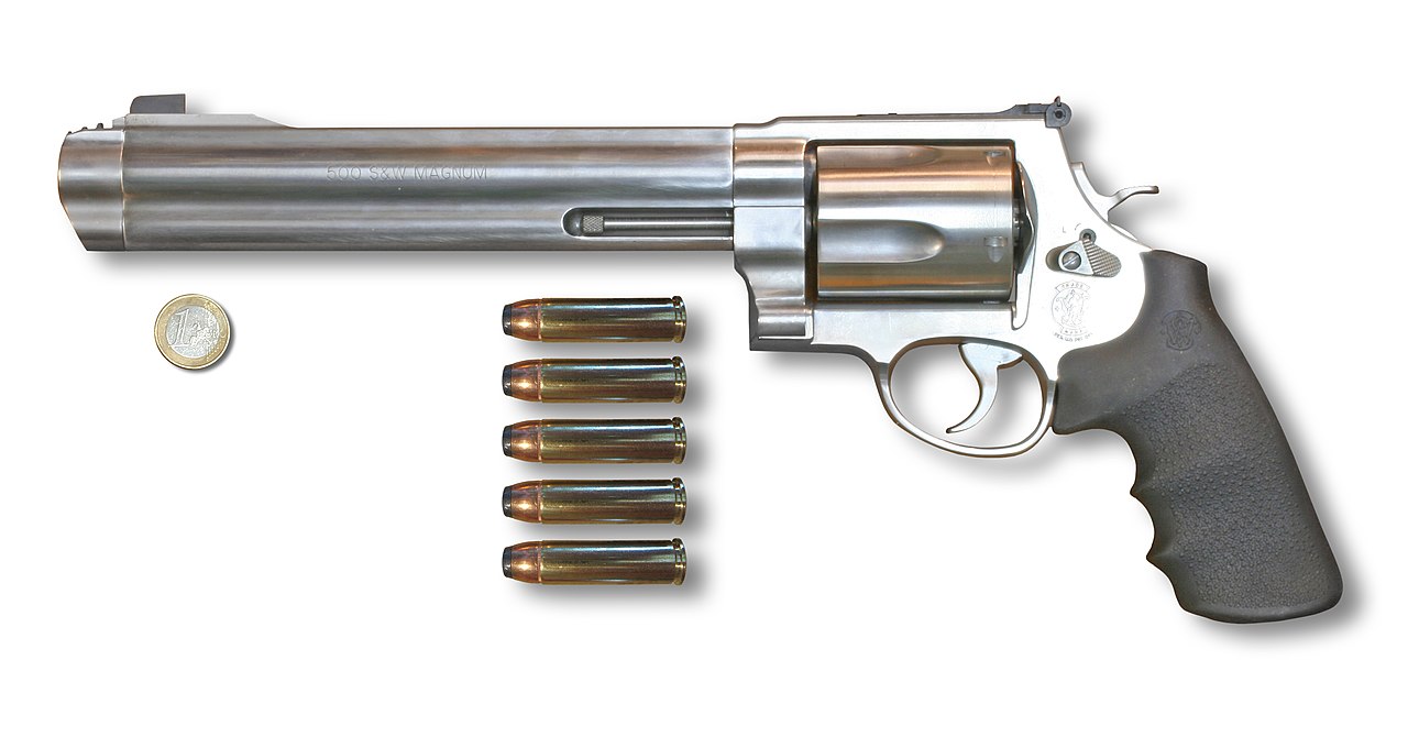 - Der Revolver, Modell „S&W500“ – (Link) (CC BY-SA 4.0)