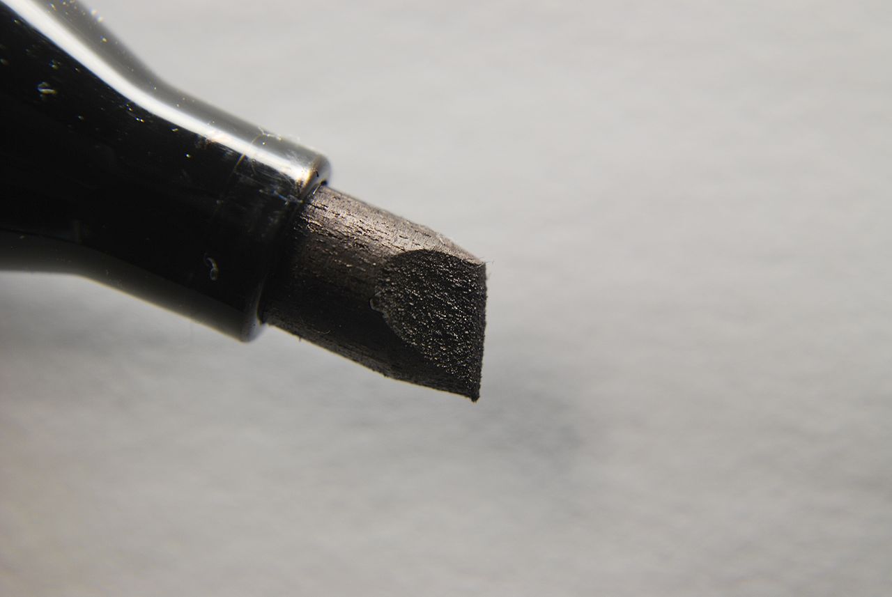 Man sieht die die Spitze einer Nahaufname eines schwarzen Permanentmarkers.